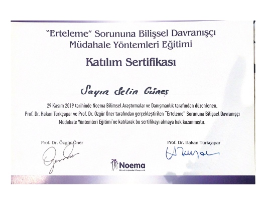 Yetişkinlerle Bilişsel Davranışçı Terapi ve Şema Terapi ekollerini çalışmaktayım.